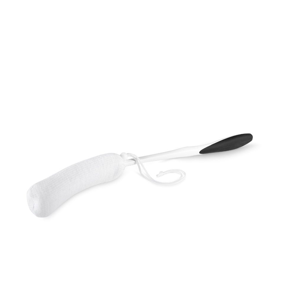 Mit der ergonomischen Waschhilfe können auch schwer erreichbare Körperpartien, z.B. der Rücken, bequem mit Seife gewaschen werden. Der Handgriff ist aus rutschfestem Material und liegt dadurch gut in der Hand, selbst wenn er nass ist.